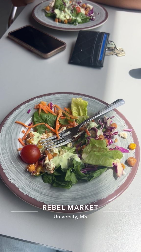 The day after I arrived in Mississippi, I was met with such an amazing welcome on the University of Mississippi Campus or Ole Miss by some amazing individuals. Sally my liaison is truly the sweetest human you will meet. Anything I needed she was more than happy to help me with me or arrange for me. She arranged for me to meet Dean Rock first, who is the dean of the Education department. Dean Rock was so happy to meet me because, he loves Calgary knows a lot about it. There is a program through Ole Miss that takes you abroad similar to our program. He has travelled to Calgary been to the University of Calgary campus as well. He was kind enough to give me recommendations of what to during my stay here. Sally and Dean rock gave me a welcome gift bag it was filled with t-shirts, a cup, stickers and so much more and some hand written cards as well. Sally also arranged for me to sit in on a few classes during my stay here which was super kind of her. She took me to a class, Music and Movement taught by Dr.Prior who is just amazing at what she does. Her approach to teaching her class helps you break out of your shell and really immerse yourself which I loved. After her class her graduate assistant Sarabeth treated me to a lunch at the Rebel Market which is one of the dining halls on Campus.