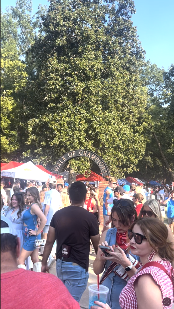 Another big part of the football culture is tailgating, again it was so surreal to experience this. I went to tailgate the next weekend and it is amazing there are hundreds of tents set up on The Grove which is on the centre of the Mississippi campus and theres food, drinks and lots of energy! You can visit other peoples tents they offer you food and drinks showing off lots of southern hospitality again. I met lots of people and made lots of friends while Ive been here which is really nice. Everyone has been so kind and compassionate to me, Offering me help with anything I need. I have been really enjoying my time here so far I am truly excited to see what else this trip brings me.