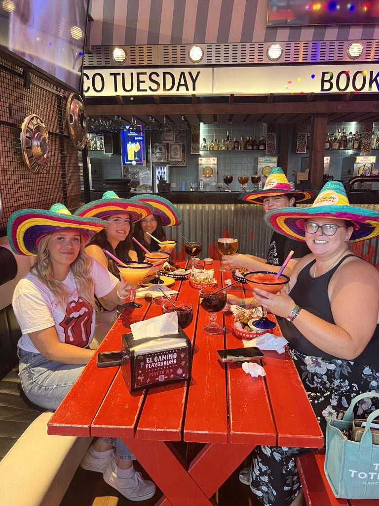 Beyond the school we have travelled around Brisbane, to the Gold Coast, to Noosa and hoping for more sightseeing adventures! So far no koalas (unless you count the road kill we saw while on the bus) and no kangaroos. We are surprised that Brisbane is such a large industrialized city. We often take the city ferry up and down the river to get places- works just like a bus but instead of bus stops its wharves/ports. We are blown away at the transit here how many options and land it covers. There is always a train (big or small line), bus or ferry to take on every corner to every place. The big trains run from city to city which is nice and there are many small trains within Brisbane that run seemlessly underground for a large portion. Central of Brisbane is Southbank in which holds many main activities and tourist attractions such as the giant ferris wheel that Caylee and Ashley rode. As well as a Cantina bar our group enjoyed giant margaritas and cheap wings (its all we can afford its not cheap here…lol). Can’t wait to continuing exploring down under.