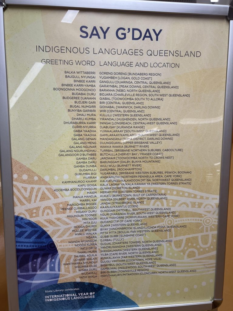 We are two weeks in to our stay here. Unfortunately due to blue card troubles we have yet to start placements. Fortunately, that issue has been resolved and we are on track to start soon! Our host here through Queensland University of Technology, Mallahai, has been so helpful and caring in creating experiences for us to do. So far we have had a University Campus tour, meeting with the Educational team at the university, lunch with some professors, attended some education seminars that professors have been kind enough to invite us to. We have also gone on a campus tour of our teaching campus (Kelvin Grove State College) and it a long one- the place is huge! We have met our partner teachers, we are all placed in our specialty areas- so exciting! We have explored museums and art galleries, all free here! Mallahai brought us to the state library here in which we did an indigenous tour, which gave us insight to the indigenous people of Australia.