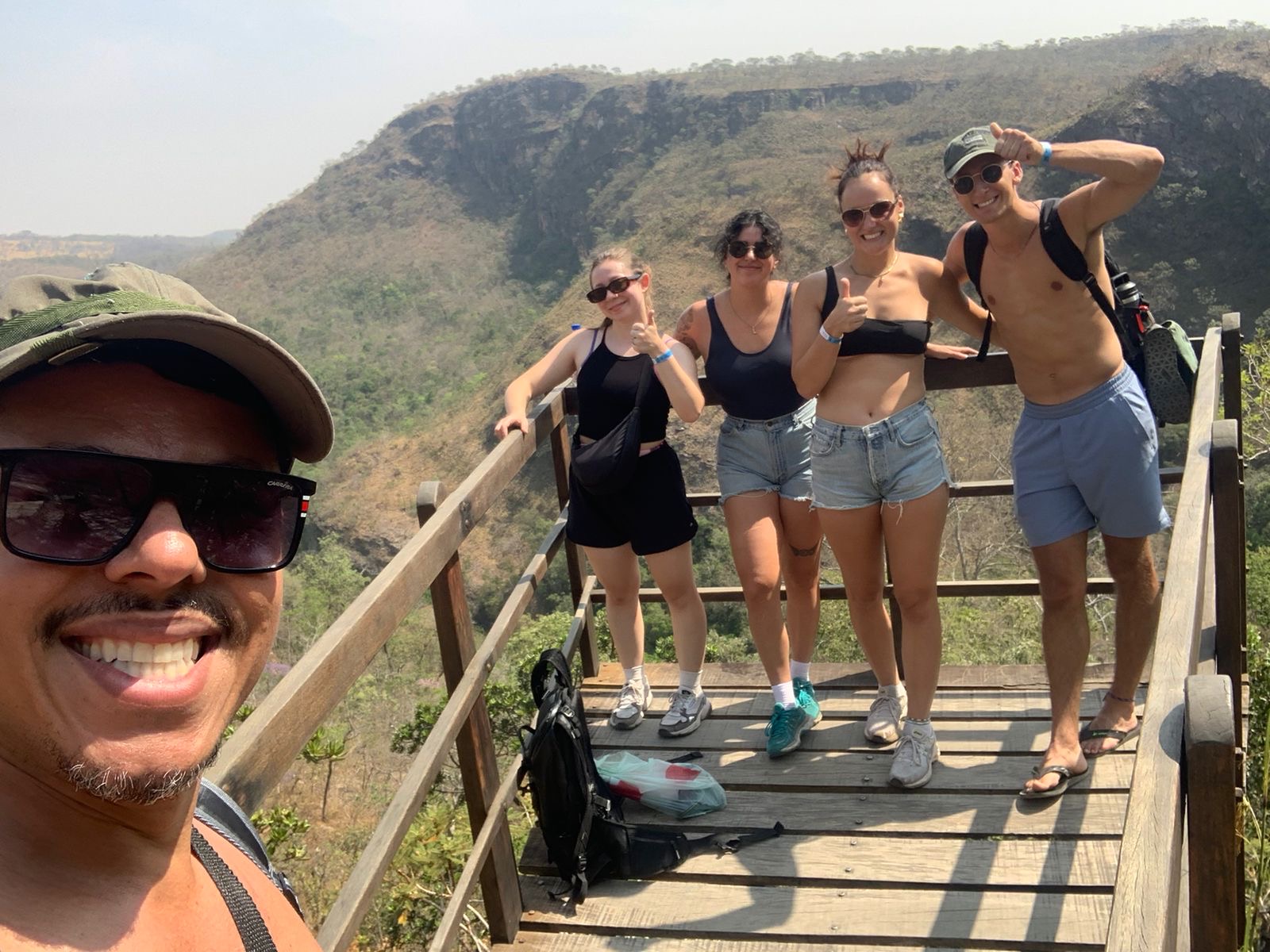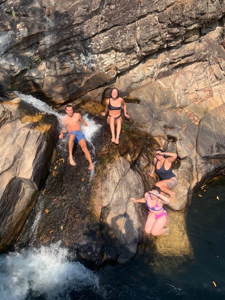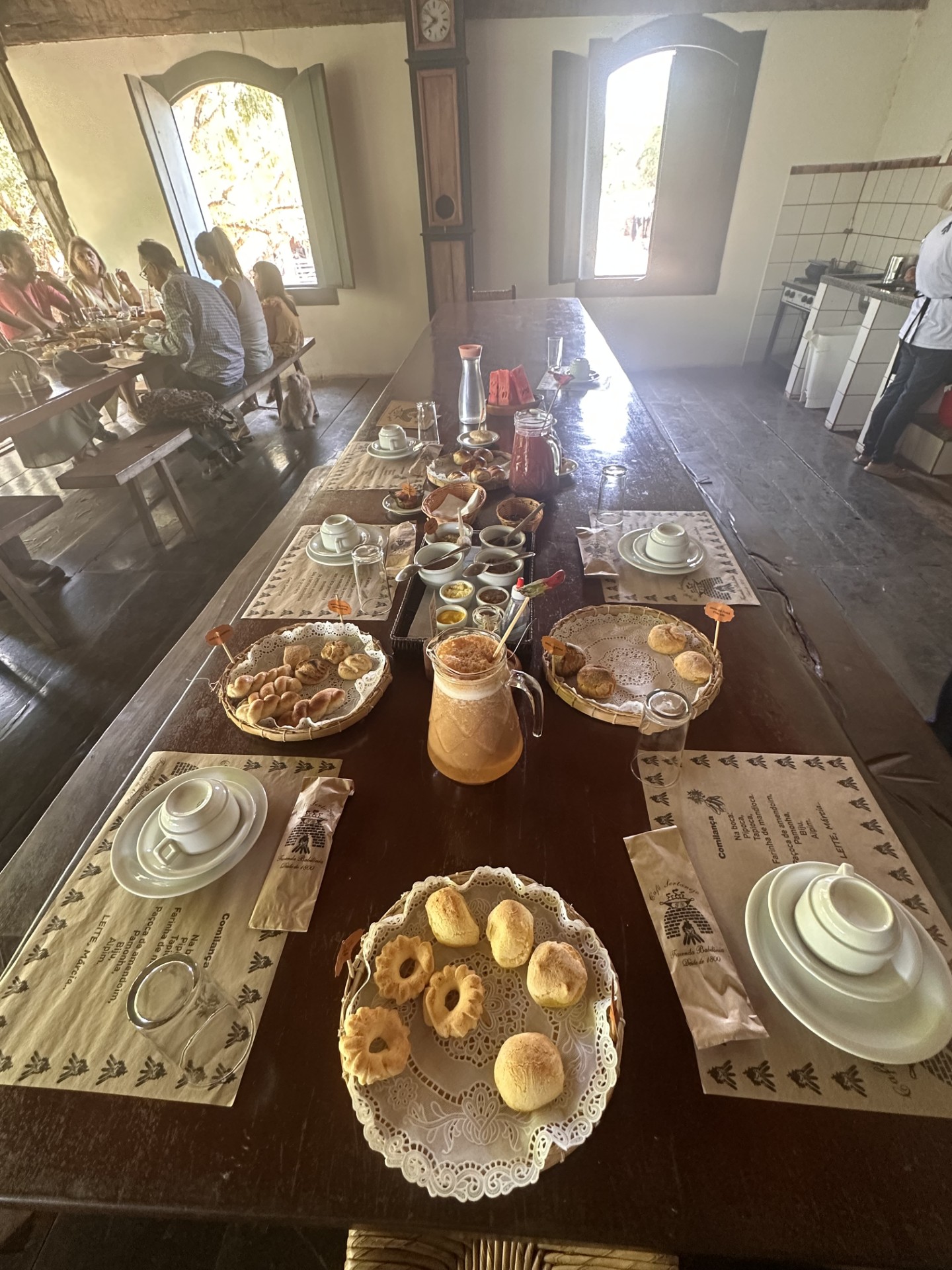Hello! We have arrived in Brazil and have enjoyed starting to explore the city and it’s surrounding areas. Goiânia is a big, busy city. We are still trying to figure out how to cross the road safely as pedestrians. It is not a very touristy area, and not many locals speak English. We are getting by with the very little Portuguese that we know/have learned, and of course some google translate.We are teaching middle school-highschool aged students at 3 different schools. So far, all the schools have been very welcoming and the students are very excited to have us here, providing us with small gifts and asking for signatures and hugs. We have learned a number of things about the education system here. One interesting fact is that the public schools can be funded by either the state, or federally. We noticed that that the federally funded schools seemed to have a bit more advanced programs and the teachers working there generally also have a masters degree. We have also attended one university english class for students who want to go into teaching. It was great to converse with these students who have similar goals to us.Our coordinator at the University of Goiás set us up with one of his PhD students, Geraldo, to attend a music festival in another town called Pirinapólis. It was a great experience of culture and music, and the town of “Piri” is very cute! It is known for it’s Portuguese colonial buildings, and many waterfalls in the area.Here we are in one of the 4 waterfalls we visited. There are more than 20 in the area! Despite the warm weather in the area (usually ~35 degrees everyday), the water is COLD. However, we thoroughly enjoyed swimming and jumping into all of the waterfalls, some with depths of up to 10 metres! This is on our hike around the waterfalls. Geraldo has taught us some Portuguese sayings, and we help him with his English as he hopes to go study in Chicago next year. We have loved trying new foods here in Brazil. This is a breakfast at an old farm from the early 1800’s near Pirinapólis. There were various meats, breads and cakes accompanied by different toppings to try, all made at the farm. After our breakfast we received a tour of the farm and learned a bit of it’s history. I really enjoy the food in Brazil, and like to try new things whenever I can. My only complaint is the lack of iced/frozen coffee… It’s so hot here, I want my caffeine cold!!