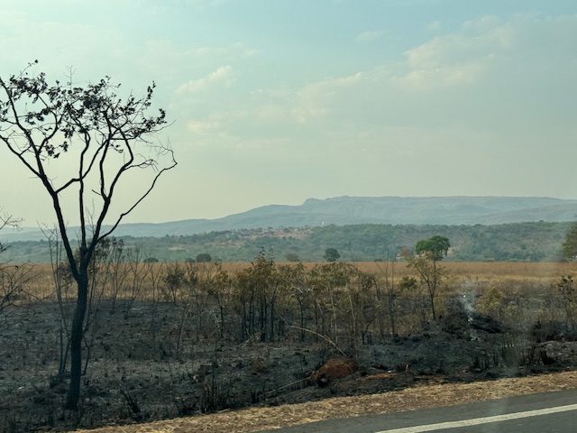 Our adventure began with a 2-hour car drive with Geraldo (Dr. Wilson’s PhD student). The countryside was very different from the city we had been staying in and gave way to some different insights into the differences between our farm land in Alberta to the farming done here in Brazil. Where our farmers’ fields are vast and lush with grain and hay field theirs contain very dry grasses and mainly cattle with a few horses. As it is the dry season here in Brazil there also existed many fires, what we in Canada would call wildfires. In Canada many of our wildfires are lightning caused and human caused, theirs here are only caused by humans.