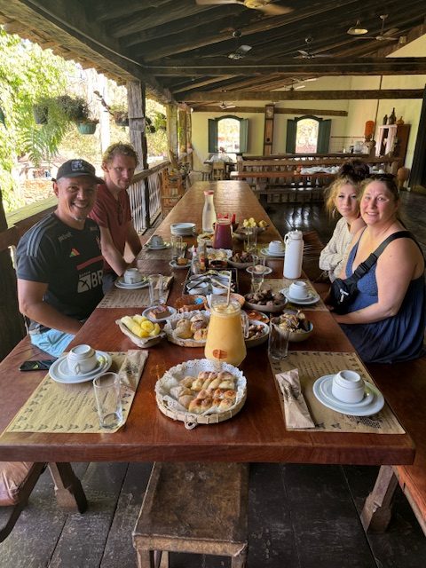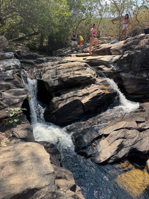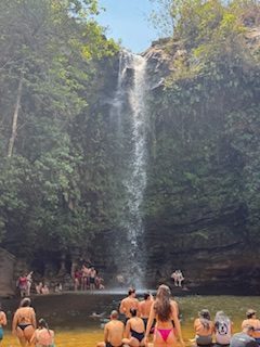 At night, we danced, and during the days, we visited several sites. On Saturday, we went to a colonial farm (Faxenda Babilônia Desde de 1800) just 20 minutes outside of Pirenópolis and to 5 different waterfalls. The farm was a very historic and delicious experience, the cafe (Cafe Sertanejo) on the farm served us a breakfast made with all traditional foods and we got to know a bit of the history and meet the owners. It was very cool hearing the story’s of how the farm grew to what it is today. It made the previous archaeologist in me wonder what type of occupational sites I would uncover if I just dug into the earth and how we don’t really have any farms that are that old (that I am aware of) in Canada. I think the closest thing to what we experienced there would be a visit to Heritage park in Calgary.