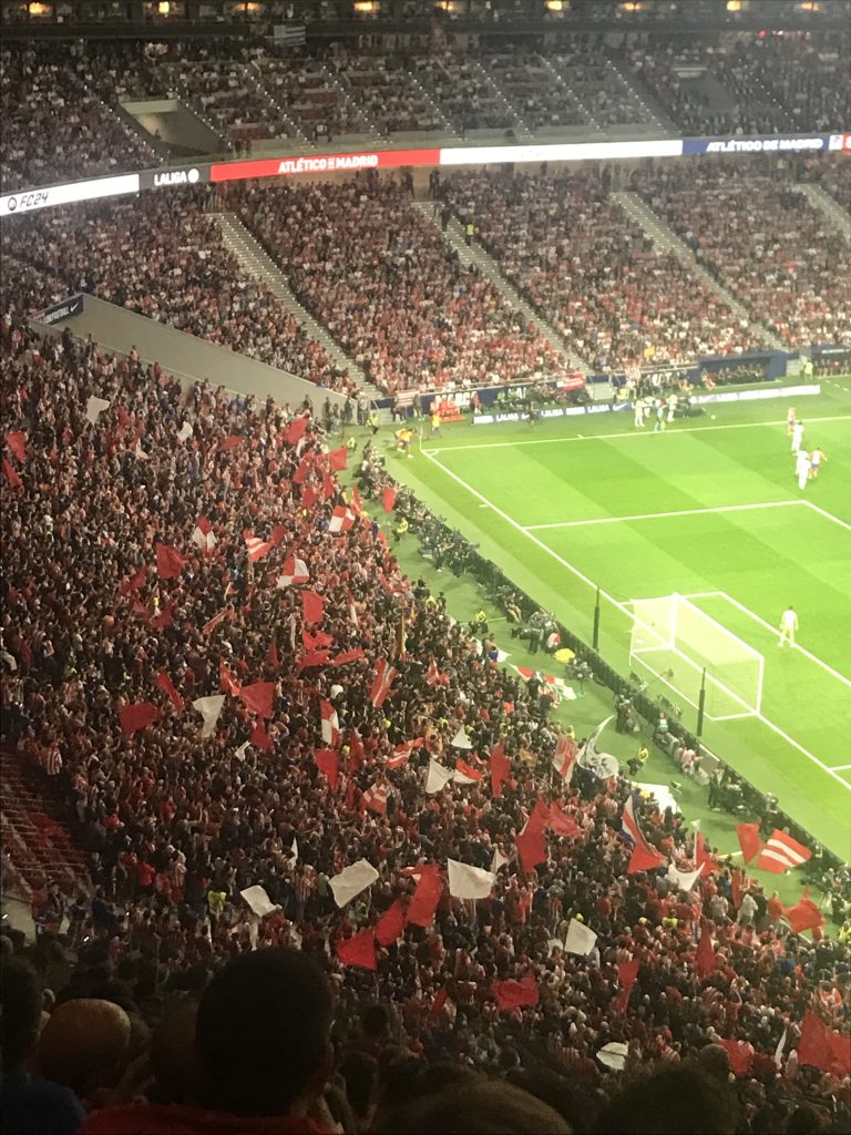 My goal before coming to Madrid was to watch every soccer game that was played while I was here. I have attended all four Atletico Madrid games since I’ve been here and every single one has been great. Every game has been exciting and close, and the atmosphere is something that is indescribable. The fans sing the entire game, and although I’m unable to understand the songs I love them all. It is so different from American sports and the fans just seem so much more passionate. There is another team in Madrid that I wasn’t able to buy tickets for (Real Madrid) as they require you to have a European visa to buy tickets for their games. This was a big disappointment because they are the biggest team in Europe and I’ve heard so many great things about their stadium. Last week I was lucky enough to get a ticket to one of the games as I have a friend that allowed me to buy a ticket using her Visa. It was a great experience but I was honestly a little disappointed by the atmosphere in comparison to the Atletico games. There were a lot more tourists at the Real Madrid game and that led to less singing and overall a worse atmosphere, although it was still fun. I definitely consider myself an Atletico Madrid fan now and I had to buy some merch as those games have been some of my favorite moments so far here. Unfortunately there are no more home games while I am here and so I will have to settle for watching the games on tv from now on.