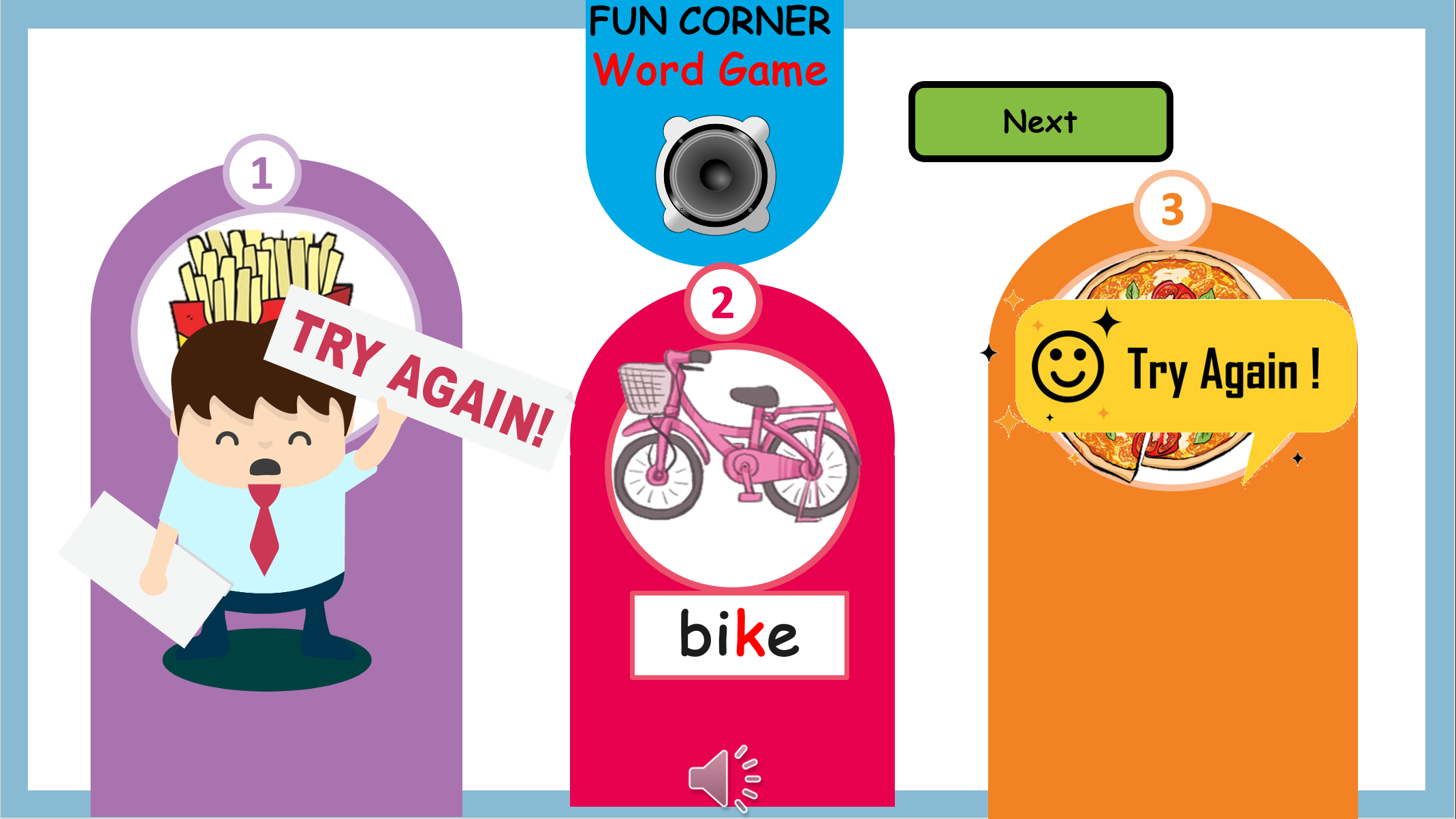 This is one example of a Grade 1 powerpoint slide. Students are given the opportunity to refresh their minds on the previous content by playing the lucky flowers game. They would earn stars for correctly naming the object, in addition to earning extra stars if they select the ‘lucky’ flower. They begin to learn the letter K by repeating different words that begin with the same letter. Additionally, students play another game by hearing a sound and identifying the correct object.