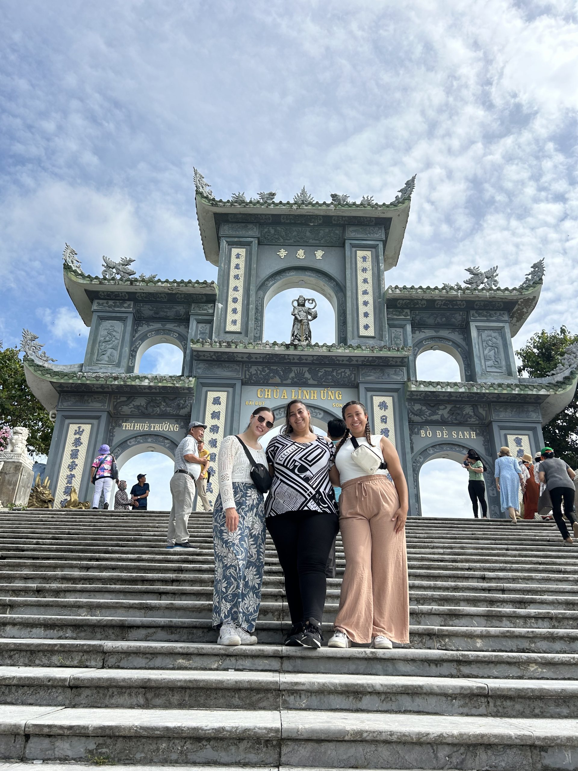 Before coming to Vietnam, I had worried about juggling everything. I would need to teach and complete course work given by the university, however I wondered how I could fit in traveling within the 2 months I spent in Vietnam. After coming here, I noticed that everything is possible! I am able to complete my school work, teach within the school as well as travel and explore Vietnam! The teachers within our school are so kind and flexible! With proper communication, we are able to work out a schedule that is both feasible for them and ourselves. Hiba (my travel bestie) and I have dedicated 3 days to the school, 2 days to do school work and 2 days to explore the beautiful cities in Vietnam! In addition to this set schedule, the lunch breaks are a great time to complete work! Coming from Canada to another country we would want to travel and explore each city. I mentioned my travel stories to my teacher and she was both happy and surprised! She mentioned how I traveled around the country more than herself! During the days off, Hiba and I have planned various places to see within Vietnam! We flew to Saigon and sent postcards to our friends and families! Additionally, we got to see the famous Cafe Apartment! It was so cool to see so many cafes in one building, however it was also interesting to see that people live in these buildings too! We also went to the walking street which had so many food restaurants and what stood out to me the most was their Indian restaurants! Being an Indian myself, I did not imagine having the ability to eat my kind of food in a different country! Apart from all the landmarks we saw in Saigon, we went to a cafe called Oasis Cafe and we were surrounded by a bunch of fishes! Another week of our traveling consisted of exploring Da Nang! What a beautiful city it is! We did an excursion that took us to the Marble Mountains, Lady Buddha statue and the My Son Sanctuary. Although it was a hot day, I was able to mark things off my bucket list by exploring these beautiful places. What made that day memorable was being caught in the rain! WE HAD NO PONCHOS OR UMBRELLA’s! Thankfully, we were able to buy some ponchos at a store however, we were drenched from the rain!